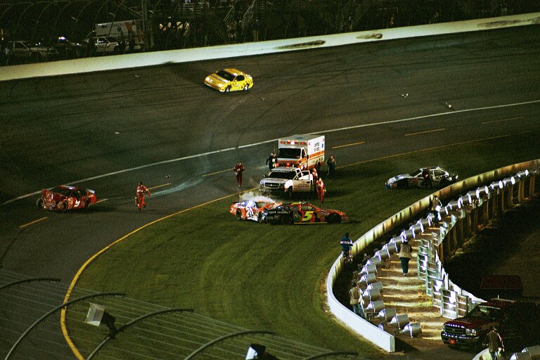 The "big one" takes out several more drivers, including "Awesome Bill" (who suffered a broken foot) Tony Stewart, Terry Labonte and Mark Martin